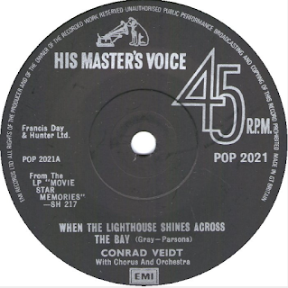 But back to Conrad Veidt’s one stab at musical greatness... for it is his version of When The Lighthouse Shines Across the Bay, originally issued on a 10” 78 in the UK in 1933 (backed with The Airman's Song, not performed by Veidt) I present for you today.