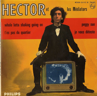 After a heated disagreement with Philips over the reissue of a brace of his old 50s covers on a then-current EP he left the company, and Les Mediators - Marc Schleck (lead guitar), Serge Mosiniak (bass), Gilbert Krantz (rhythm guitar) and William ‘Atomic Bill’ Roudil (drums) - behind him. Hector continued as a solo act for a couple of years, issuing EPs in 1964 for Ducaret Thompson (via Pathé Marconi) - Alligator/Mon Copain Johny//La Femme De Ma Vie/Hong Kong - and Polydor (Abab L’Arab[a cover of the Ray Stevens/Jimmy Savile novelty hit Ahab the Arab]/Il Faut Seulement Une Petite Fille//Le Gamin Couché [a cover of the Monkees-related US hit The Gamma Goochee]/A La Fin De La Semelle [a dire French language version of Otis Redding’s I've Been Loving You Too Long]).